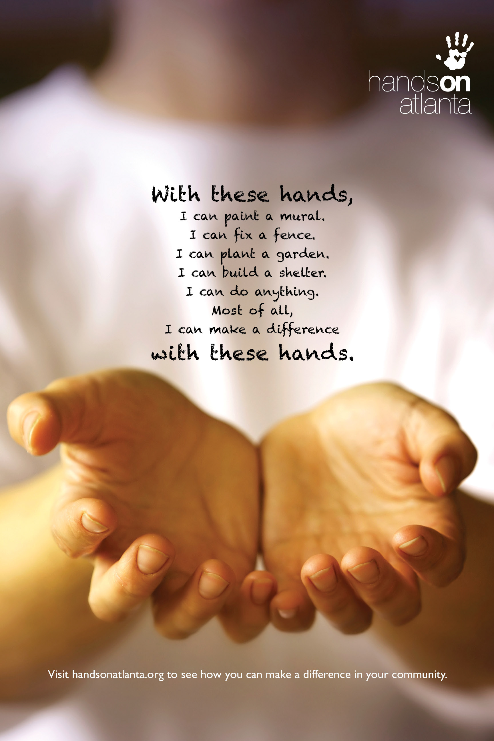 Poster for Hands On Atlanta, a public service organization aiming to encourage people to volunteer in their community.